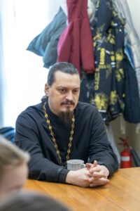 В старшей группе на уроке Закона Божия священник Владимир Суяргулов прочитал и обсудил с детьми 5 главу книги Бытия. В заключение урока отец Владимир ответил на вопросы воспитанников.