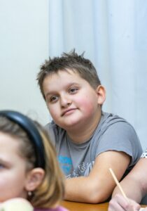 На занятии церковного пения ребята продолжили подготовку к Рождеству: работали над певческим дыханием, сделали разминку, повторили скороговорки и разучивали колядки.