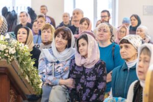 За богослужением помолились о всех, чьи имена были поданы через онлайн-сервис и в свечной лавке.