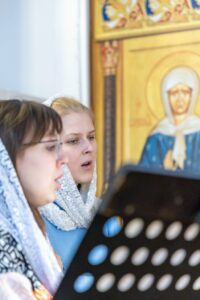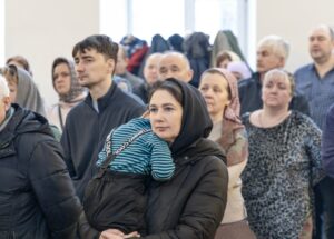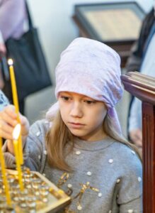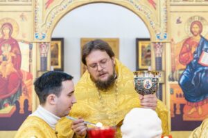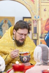 За богослужением помолились о всех, чьи имена были поданы через онлайн-сервис и в свечной лавке.