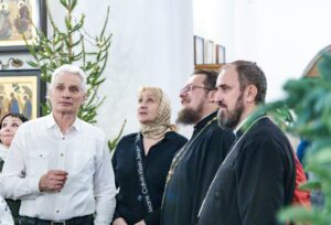По окончании богослужения было совершено славление празднику, затем настоятель поздравил прихожан с окончанием поста и наступлением дня светлого Рождества Христова и пригласил на общую трапезу.