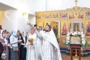 За Божественной литургией были вознесены молитвы о всех, чьи имена были присланы онлайн и переданы через церковную лавку.