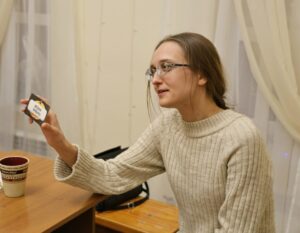 По окончании беседы все вместе поиграли в игру «Кто Я?». Участник должен был задавать вопросы и по ответам аудитории должен был назвать предмет или явление, написанные на карточках.