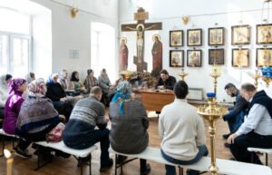 В минувшее воскресенье священник Игорь Москвичев провел очередную встречу с прихожанами. Собравшиеся обсудили тему молитвы. Отец Игорь объяснил, что молитва – это добровольное обращение человека к Богу как к Небесному Отцу.