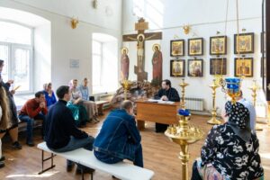 Священник Сергий Нурматов вместе с прихожанами рассуждал на тему: «Бог — любящий Отец или карающий Судья?» Участники встречи отметили для себя значение слова «любовь» как сущности, а не эмоции, так как в Писании прямо сказано: «Бог есть любовь». Его природа — это жертвенная отдача. Любовь Отца — это не попустительство, а стремление к восстановлению образа Своего подобия в человеке.