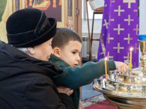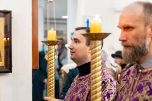 За Божественной литургией были вознесены молитвы о всех, чьи имена были присланы онлайн и переданы через церковную лавку.