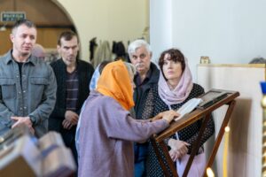 За Божественной литургией были вознесены молитвы о всех, чьи имена были присланы онлайн и переданы через церковную лавку.