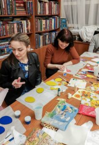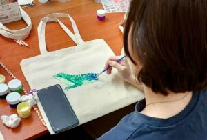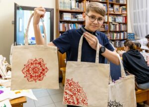 Помимо декупажа, взяв в руки краски и кисти ребята также занялись росписью шоперов.
