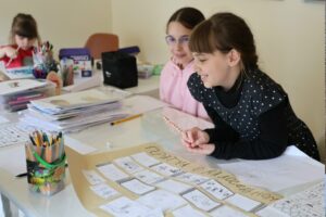 В минувшее воскресенье, 26 апреля, на уроке Закона Божия разобрали понятие «жены-мироносицы»: вместе с преподавателем дети рассмотрели икону святых жен-мироносиц и узнали, кем были в жизни Мария Магдалина, Мария Клеопова, Саломия, Иоанна, Марфа, Мария.