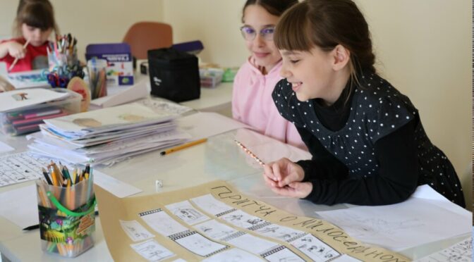 Урок мультипликации прошел в помещении новой студии. Дети вместе с педагогом делали этюды на христианскую тематику и «оживляли» своих героев на анимационном станке.